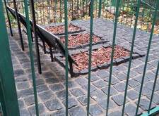 Мы заканчивали работы осенью, уже опадали листья, к слову сказать, пол из брусчатки очень легко чистится от подобного мусора.