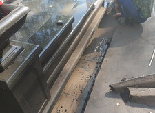 В ходе работ возникло небольшое недопонимание между нами и администрацией кладбища. Нас попросили убрать выступающую на проезжую часть площадь прилежащей территории. Конфликт был урегулирован, мы немного подрезали гранит и положили в образовавшуюся нишу холодный асфальт.