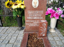 Так выглядело место захоронения на момент окончания работ: оградка заменена, памятник дополнен цветником и вазой, земля укрыта брусчаткой. Помимо этого, мы покрыли секции ограждения серебрянкой.